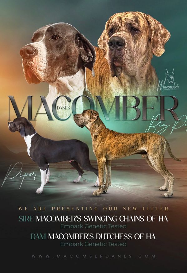 At Macomber Danes, we're thrilled to announce that new litters of our beloved Great Danes are on the way soon! If you’ve been dreaming of adding one of these majestic, loving companions to your family, now is the perfect time to join our waitlist.